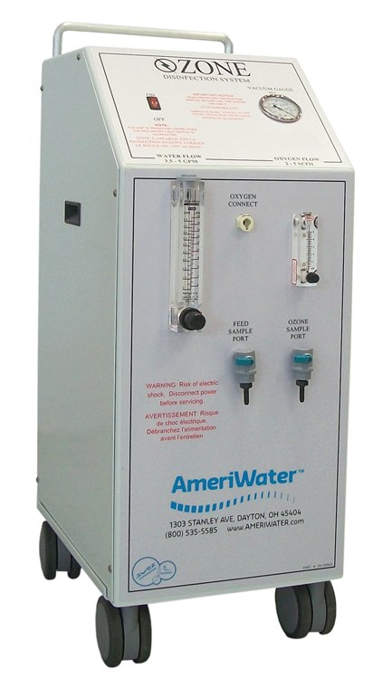 The AMERIWATER OZONE DISINFECTION SYSTEM uses a gas off tank to contain any ozone gas not dissolved in the water and an ozone gas destruct device to limit the ozone exposure in the area of use. Ozone has a very short half-life and will decompose to oxygen in less than 5 hours. The human nose can detect the ozone odor at .02 PPM, which is 5 times lower than the OSHA safe level. Absolute Water Technologies (an approved Ameriwater Dealer) is trained in this area and can help you with ozone sanitization needs. Contact us for a complete menu of sanitization services and technical advice on loop and complete system sanitizations.